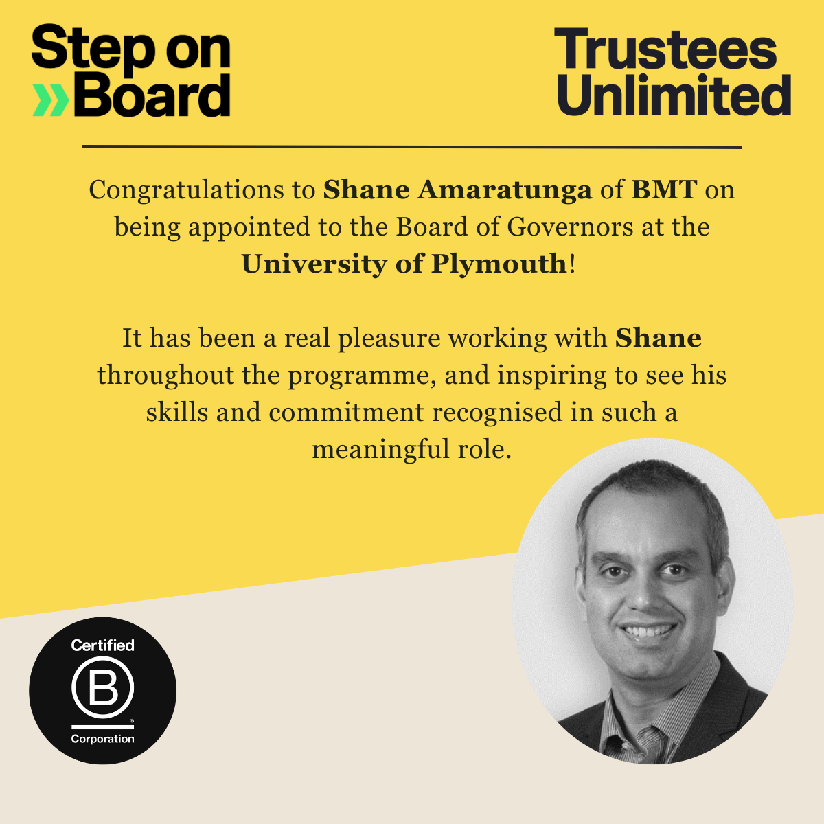 Shane participated in the Step on Board programme, run by Trustees Unlimited, which connects talented professionals with meaningful trustee roles across the UK.